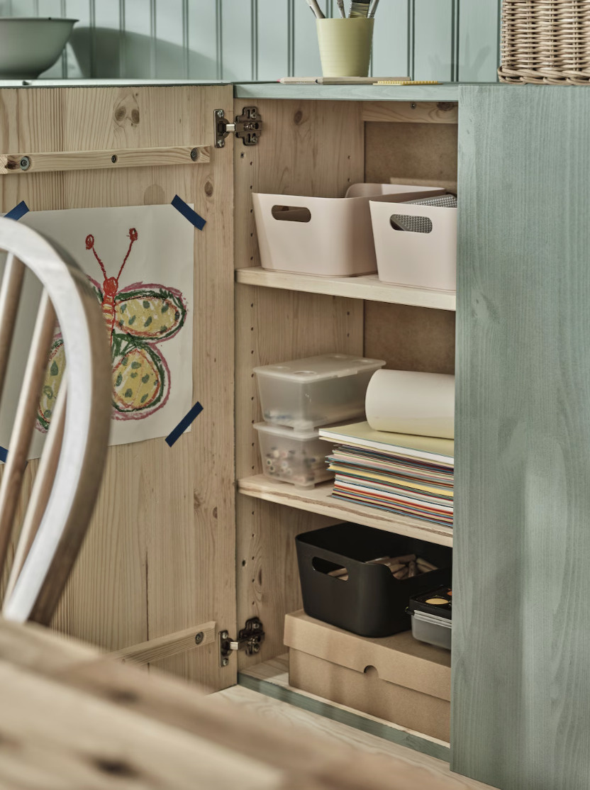 よく使うものは子どもの手が届く範囲にまとめておき、あまり使わないものや季節ものは上の棚に収納するなど、使いやすさを考えた配置を心がけましょう。