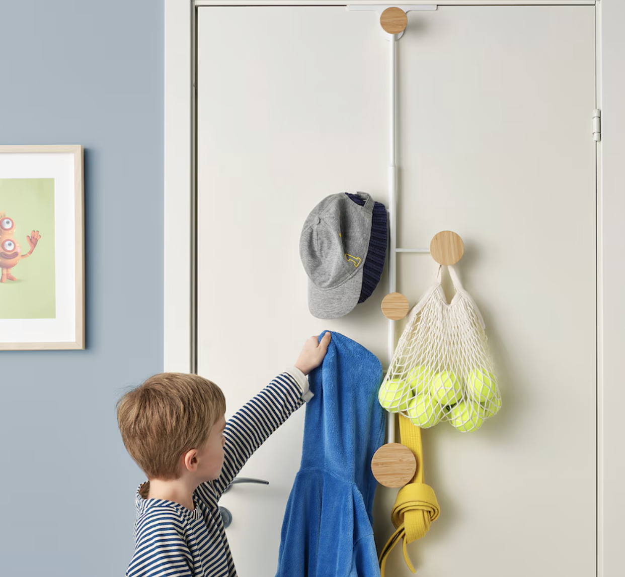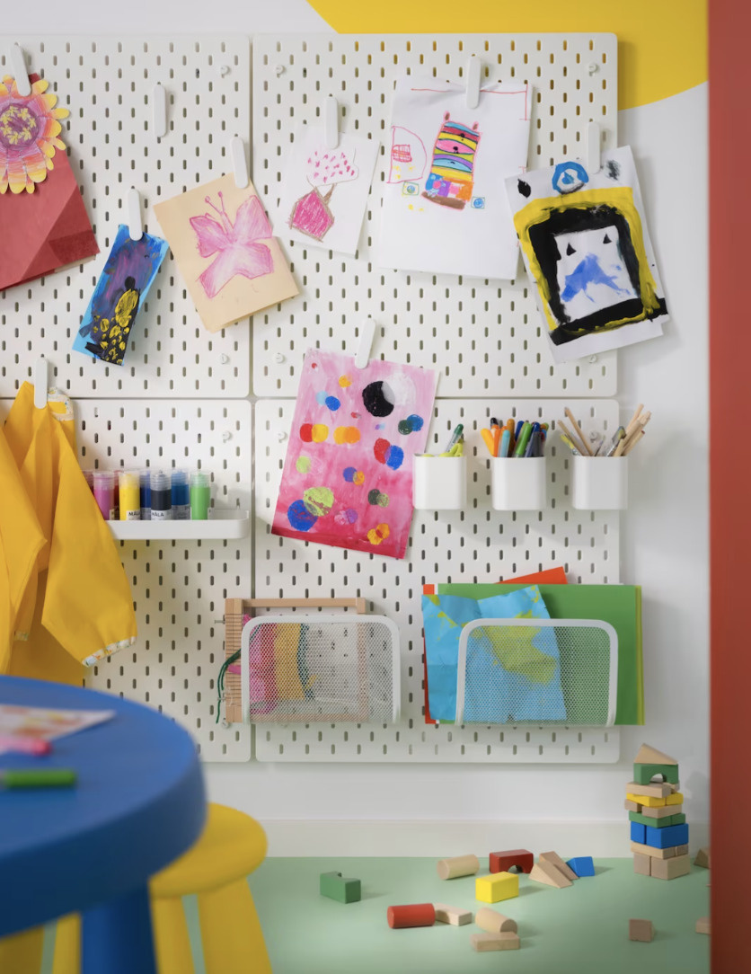 ・有孔ボード(ペグボード):フックやトレイを自由に組み合わせられ、成長に合わせてアレンジ可能。