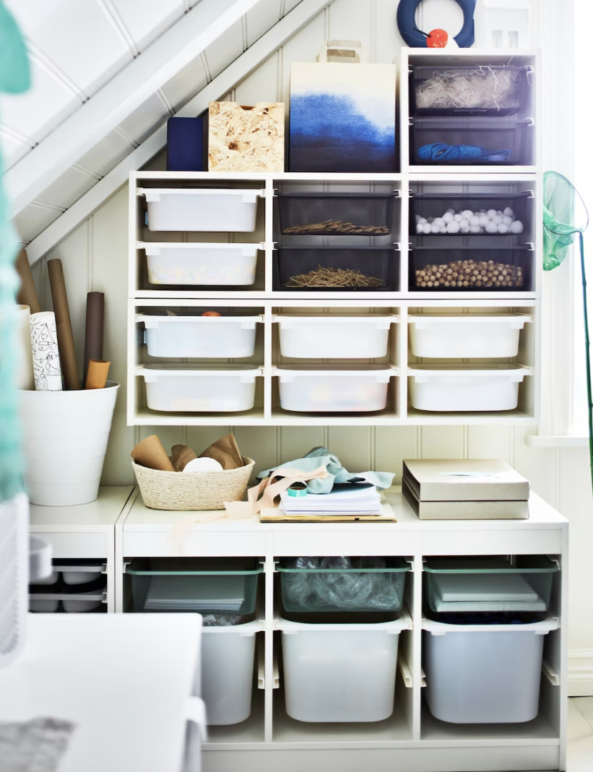 さらに、ボックスや収納ケースを色分けすると、視覚的に分かりやすくなり、片付ける場所を覚えやすくなります。