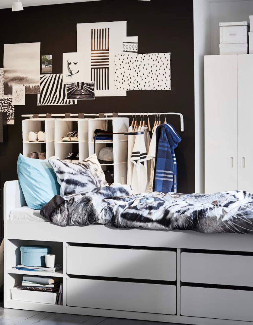 ・ロフトベッド:ベッド下にデスクや収納棚を設置できるタイプなら、就寝スペースと学習・収納エリアを1つの空間で完結できます。