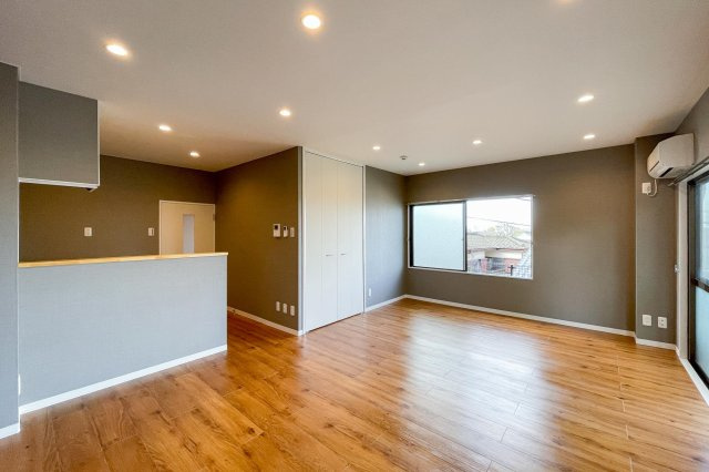 光を取り込むワイドな窓と、落ち着いた木目フローリングが心地よい暮らしを演出します。