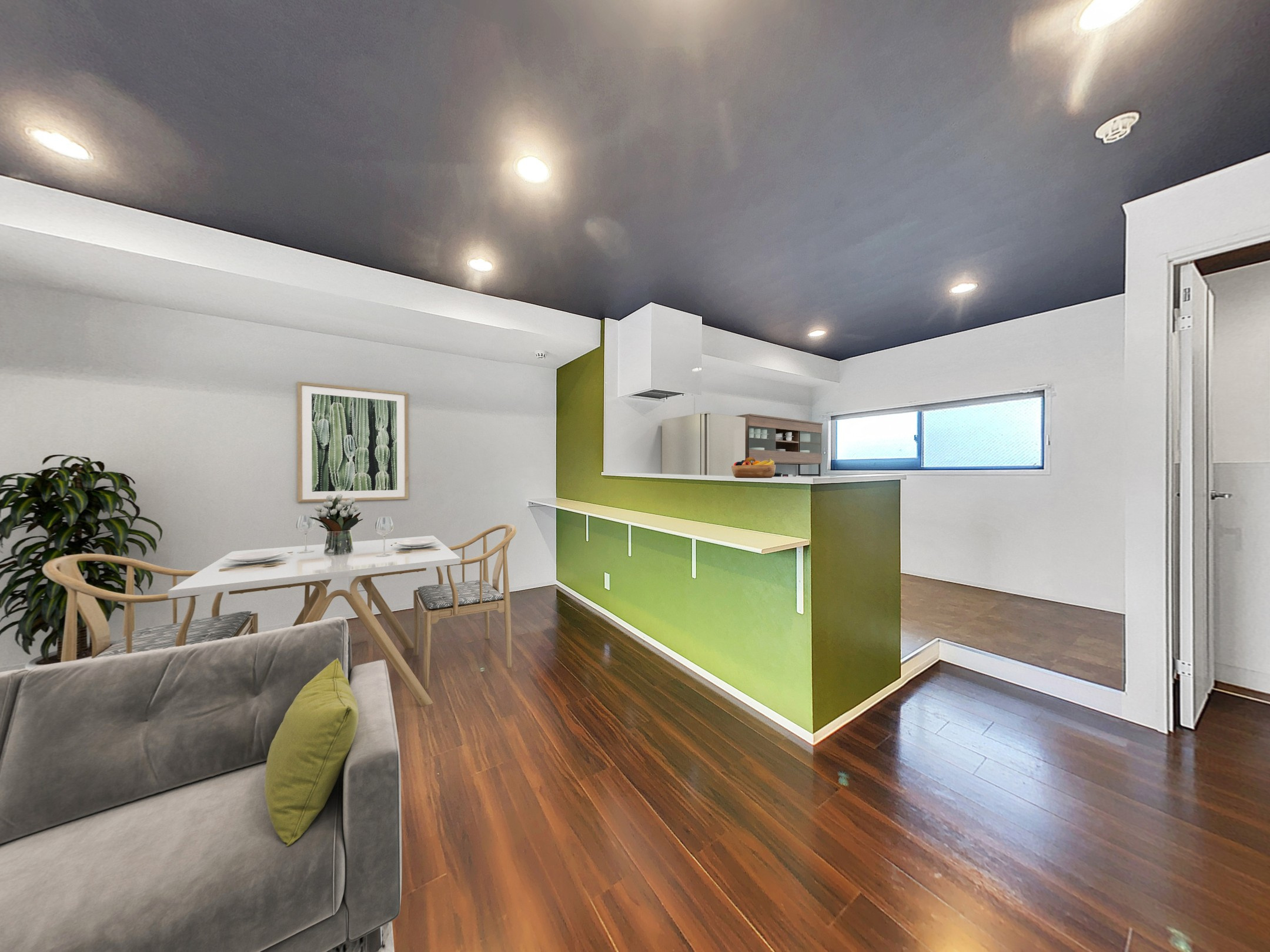 キッチンがリビングと一体化しているため、料理中でも自然なコミュニケーションが可能です。