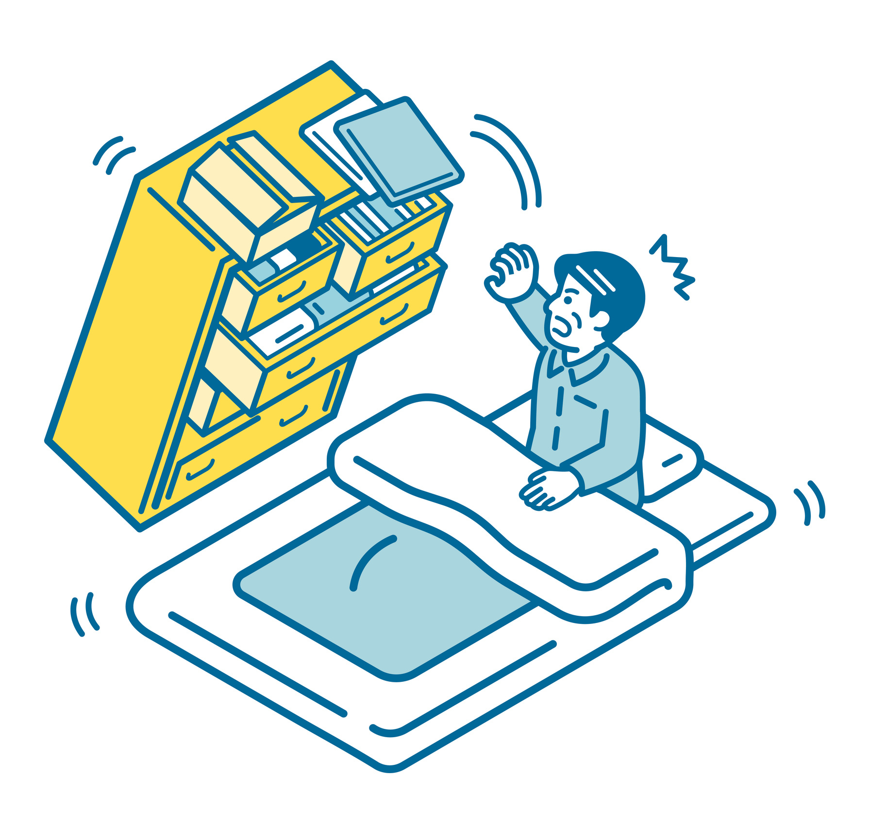 地震の揺れで最も多いケガの原因が「家具の転倒や落下」です。