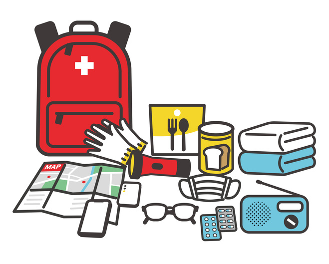 災害発生時、すぐに避難できるように非常用持ち出し袋を用意しておきましょう。