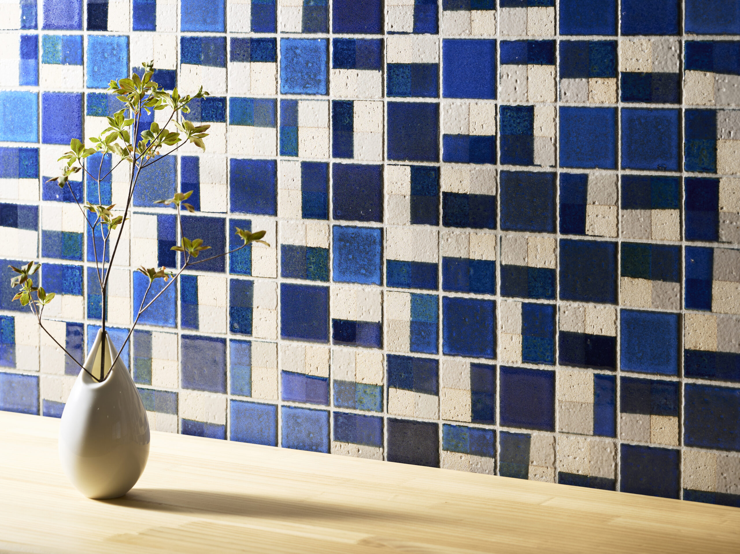 タイルは、光の反射・陰影・素材そのものの風合いが、壁や床に貼られた時に面としての存在感を発揮します。