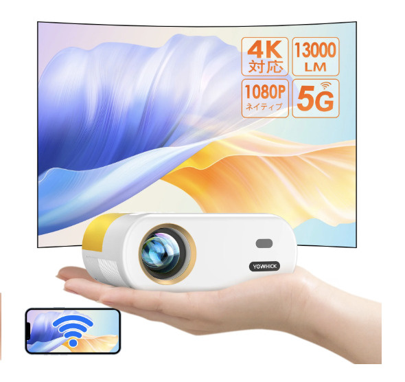 手軽な価格帯ながら「1080p対応」「短距離投影可能」「Wi‑Fi/Bluetooth接続」など、必要な機能が揃っており、初めてプロジェクターを使う/サブ用途でたまに動画を観たいという人に向いています。