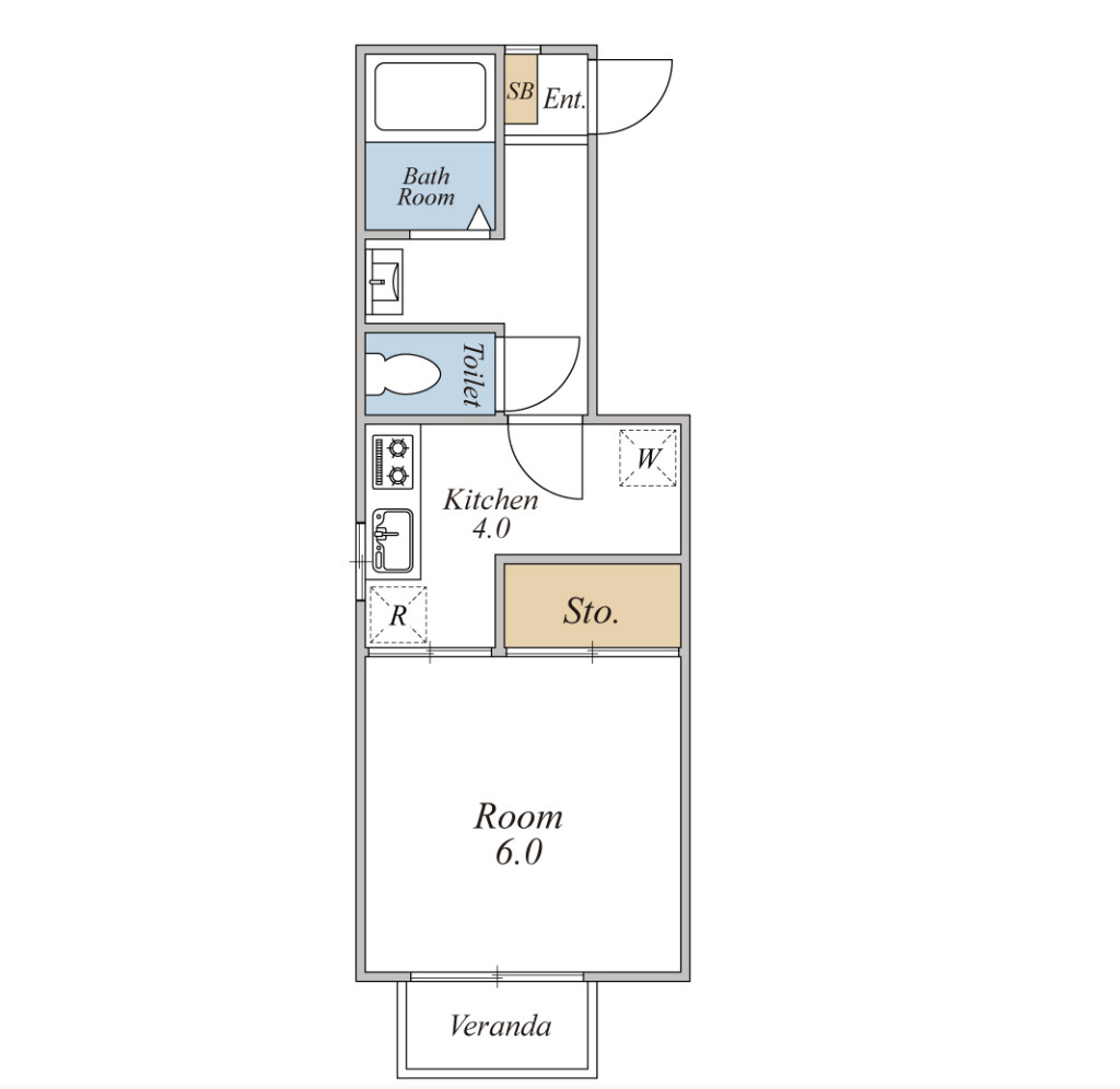 ワンルームは、玄関から入って居室とキッチンがつながっているタイプの間取りです。